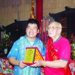 来自各地庙宇的21尊金身在理事的护送下平安到达泗水三保圣庙,并摆放在神坛上两天。为感谢各地庙宇代表,泗水三保圣庙名誉主席吴裕远分别向各庙宇代表赠送纪念品并合影留念。(Aprilia/LFS译)
