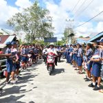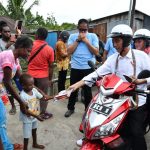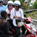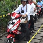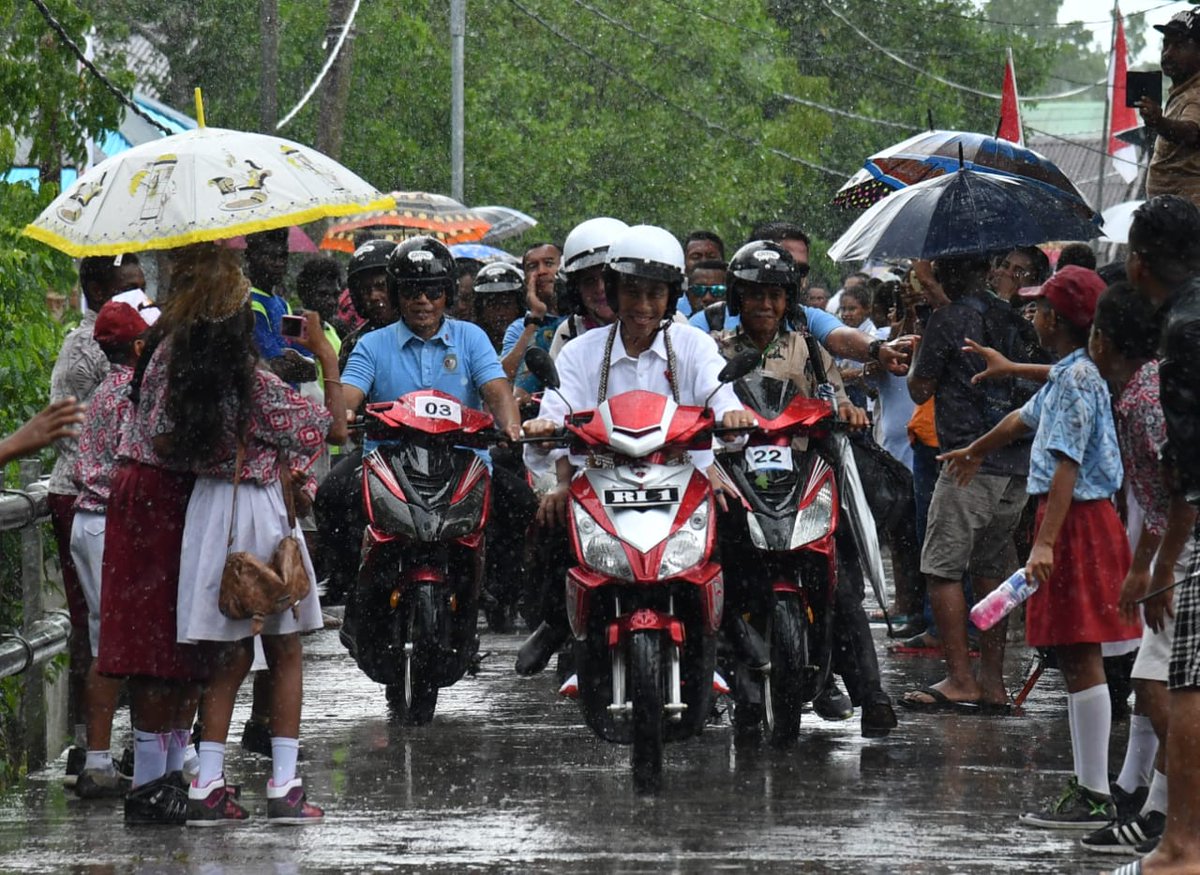 Presiden pun memboncengi Ibu Iriana dengan motor listrik berwarna merah menuju Aula Wiyata Mandala, Dinas Pendidikan Kabupaten Asmat yang berjarak 2,8 kilometer.