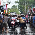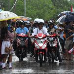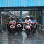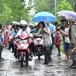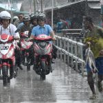 Ketika Presiden dan Ibu Iriana akan kembali ke helipad untuk melanjutkan perjalanan dengan menggunakan motor listrik, hujan turun dengan lebatnya. Presiden tetap memacu motor listriknya sejauh 3,5 kilometer.