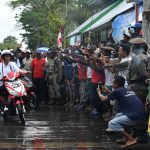 Di sepanjang jalan, banyak warga yang menyambut kehadiran orang nomor satu di Indonesia tersebut. Presiden dan Ibu Iriana yang keduanya mengenakan kemeja lengan panjang berwarna putih dan celana panjang berwarna gelap serta menggunakan helm berwarna putih, sesekali melambaikan tangan membalas sapaan warga.