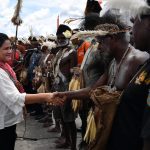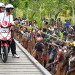 Saat menuju proyek ini, Presiden harus mengendarai motor listrik itu melewati jembatan panjang yang terbuat dari kayu dan hanya memiliki lebar tidak lebih dari 3 meter. Ketika tengah menuju proyek infrastruktur, Presiden dan Ibu Iriana disambut tari-tarian oleh warga.