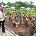 “Untuk infrastruktur jembatan gantung menerobos ke arah pemukiman akan memutari kota ini sepanjang kurang lebih 12 kilometer. Semuanya disokong oleh beton, lebih awet dan kita ingin tata ruang di Kabupaten Asmat bisa lebih tertata kotanya,” tutur Kepala Negara.