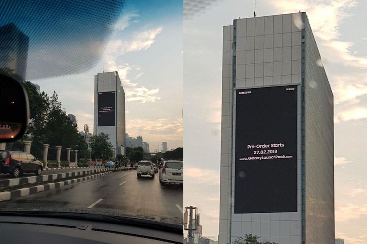 “Pre-order dimulai 27.02/2018,” bunyi tulisan singkat di billboard, diikuti alamat URL www.GalaxyLaunchPack.com yang biasanya digunakan Samsung untuk pemesanan ponsel-ponsel seri Galaxy besutan Samsung, termasuk seri flagship.