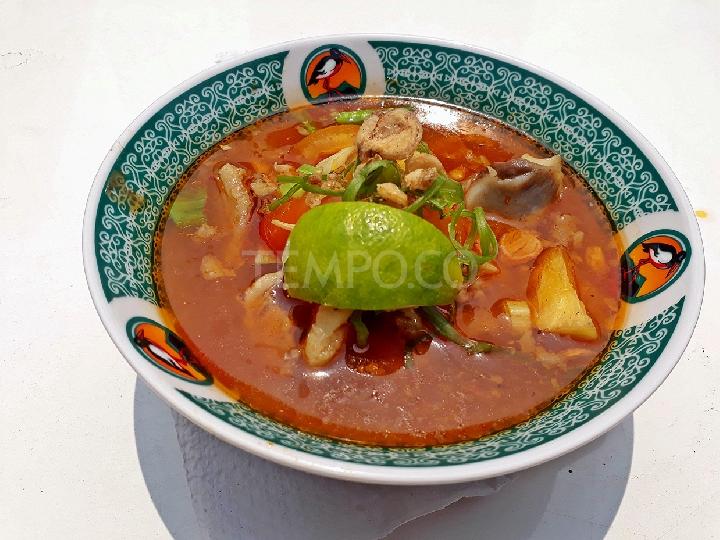 “Kuah ini cuma kelihatan merah. Aslinya tidak terlalu pedas karena cabai yang digunakan ialah cabai merah besar yang sudah dikeluarkan bijinya,” ujar Eliawati. Adapun rasa segar berasal dari nanas yang dipotong sebesar dadu.