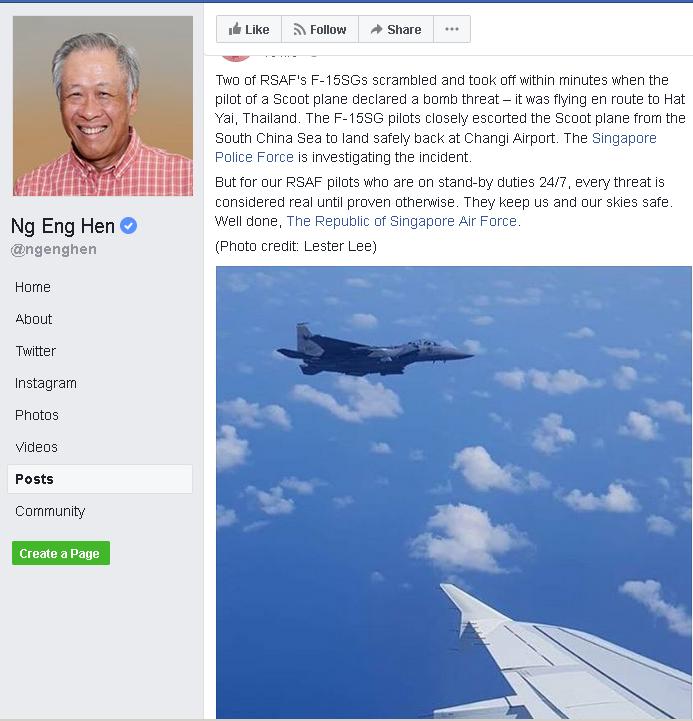 Secara terpisah, di pos Facebook sekitar pukul 4.30 sore, Menteri Pertahanan Ng Eng Hen memuji RSAF – yang jet tempur F15SG-nya “lepas landas dalam beberapa menit” setelah ancaman bom – untuk tanggapan cepat mereka.