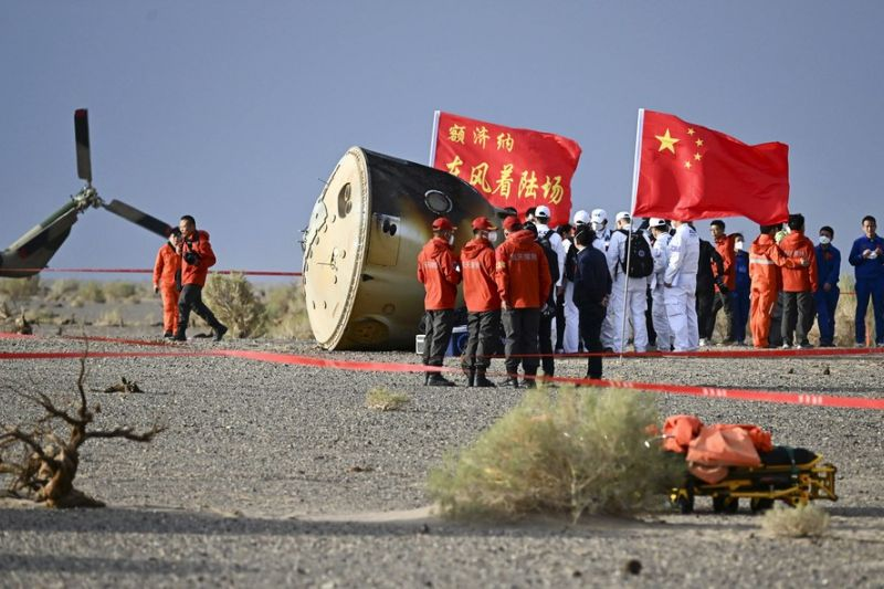Kapsul Shenzhou-15 mendarat di tempat pendaratan Dongfeng di Daerah Otonom Mongolia Dalam, China utara, Minggu pukul 06.33 Waktu Beijing ( 05.33 WIB).