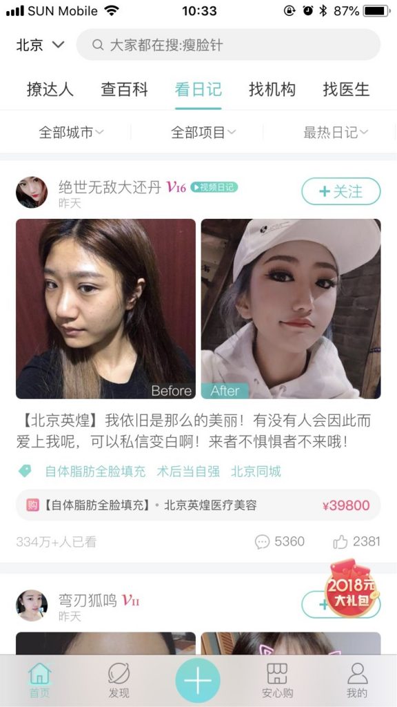Seperti Facebook untuk operasi plastik, SoYoung adalah yang terbesar dari segelintir jejaring sosial khusus – Gengmei dan Yuemei adalah dua pesaingnya – yang didedikasikan untuk menyediakan platform di mana klinik dan dokter dapat menemukan pelanggan dan 30 juta penggunanya dapat menemukan orang yang berpikiran sama untuk berbagi pengalaman mereka.