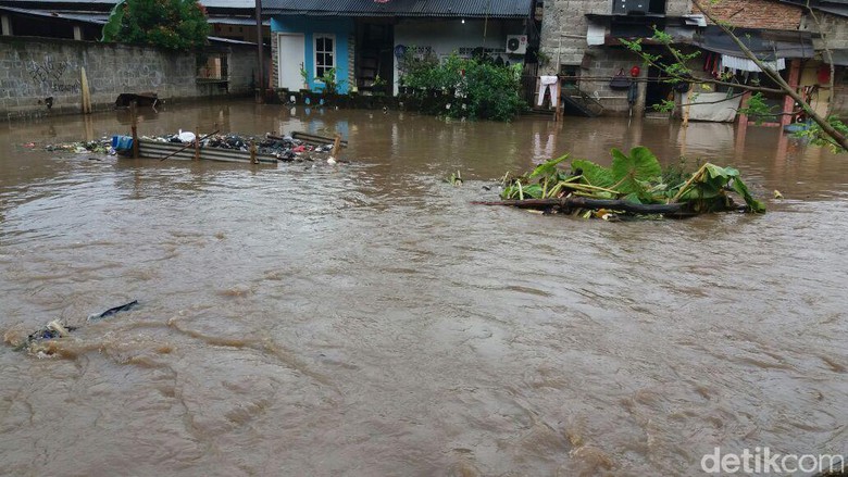 Air kemudian menggenangi rumah warga. Ketinggian air mencapai sekitar 20-30 cm pada pagi tadi sekitar pukul 07.00 WIB.