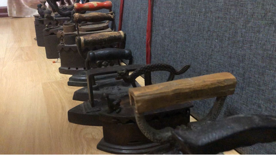 Teng Yongshan telah mengumpulkan lebih dari 30 setrika kuno lama sejak tahun 2000 saat ia membeli koleksinya yang pertama.