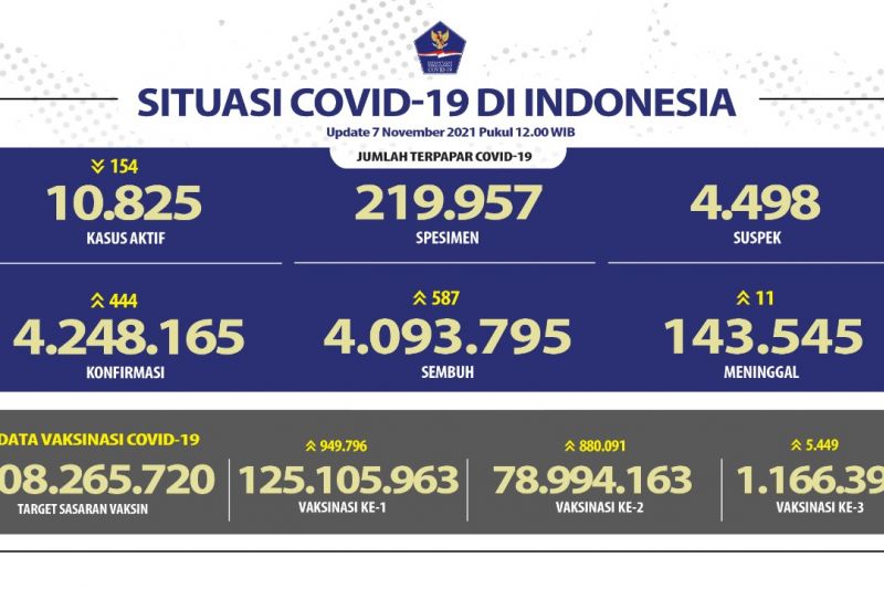 Dengan tambahan sebanyak 444 kasus tersebut, jumlah kasus positif COVID-19 yang Indonesia secara keseluruhan menjadi 4.248.165 kasus.