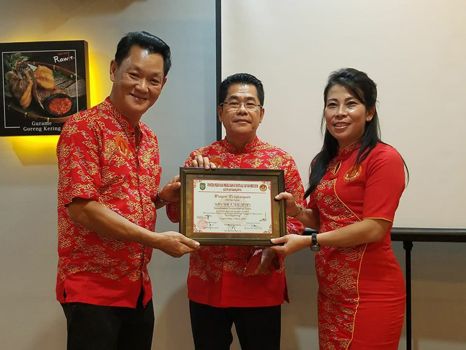 Dalam kesempatan tersebut, Tjhai Chui Mie bersama Ketua Umum Panitia perayaan Imlek dan Cap Go Meh, Leonardi Tjhai menyerahkan piagam penghargaan sekaligus menyampaikan ucapan rasa terima kasih atas partisipasi dan dukungan para panitia, yang telah bekerja dengan sangat baik sehingga seluruh rangkaian kegiatan perayaan Imlek dan Cap Go Meh, dapat berjalan dengan sukses dan lancar sesuai dengan yang diharapkan.