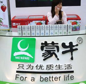 Produsen susu terbesar kedua di China Mengniu memiliki produknya yang berjajar di stan luas yang menampilkan sapi plastik yang dicat, permainan interaktif dan potongan Lionel Messi untuk peluang berfoto.