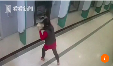 Cuplikan pengintaian menunjukkan seorang wanita berjalan ke bilik yang membawa batu dan batu bata. Dia kemudian melihat ke kamera dan melambaikan tangan sebelum melemparkannya ke mesin.