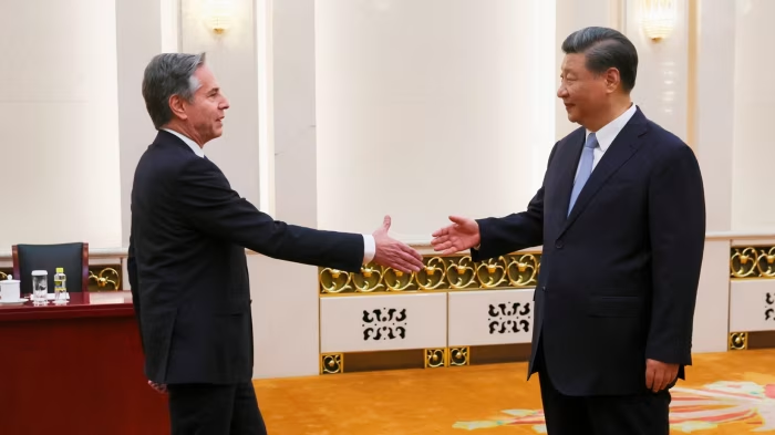 Presiden Xi Jinping melakukan pertemuan dengan Menteri Luar Negeri Amerika Serikat Antony Blinken di Balai Besar Rakyat di Beijing, pada Jumat.